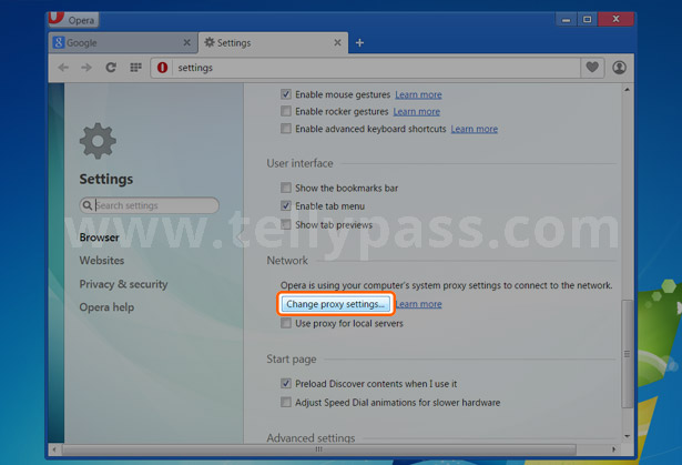| 2. | 2.Click on the Change proxy settings button in order to open the Internet Options window |